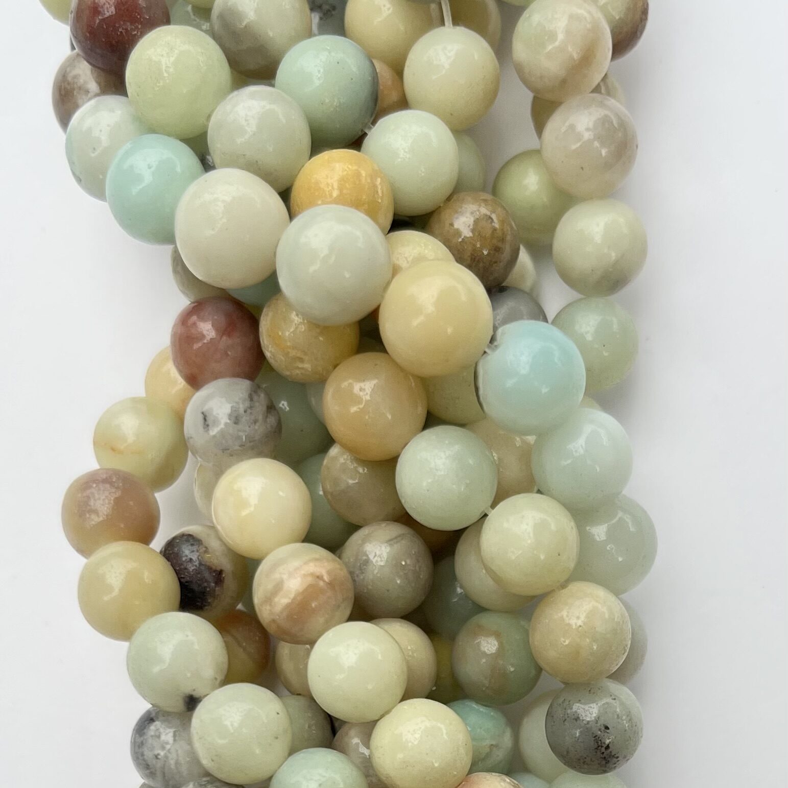 Amazonit wielokolorowy – kamień harmonii i wolności. Amazonit wielokolorowy to niezwykła odmiana klasycznego amazonitu, w której natura namalowała barwną mozaikę zieleni, błękitu, bieli, a czasem także żółci czy różu. Każdy kamień jest unikalny – niepowtarzalne pasma i smugi sprawiają, że wygląda jak miniaturowe dzieło sztuki. Ten „kamień nadziei” od wieków uznawany jest za talizman równowagi i wewnętrznego spokoju. Łączy w sobie energię wielu barw, dlatego sprzyja osobom poszukującym wolności, odwagi do bycia sobą i harmonii w relacjach.