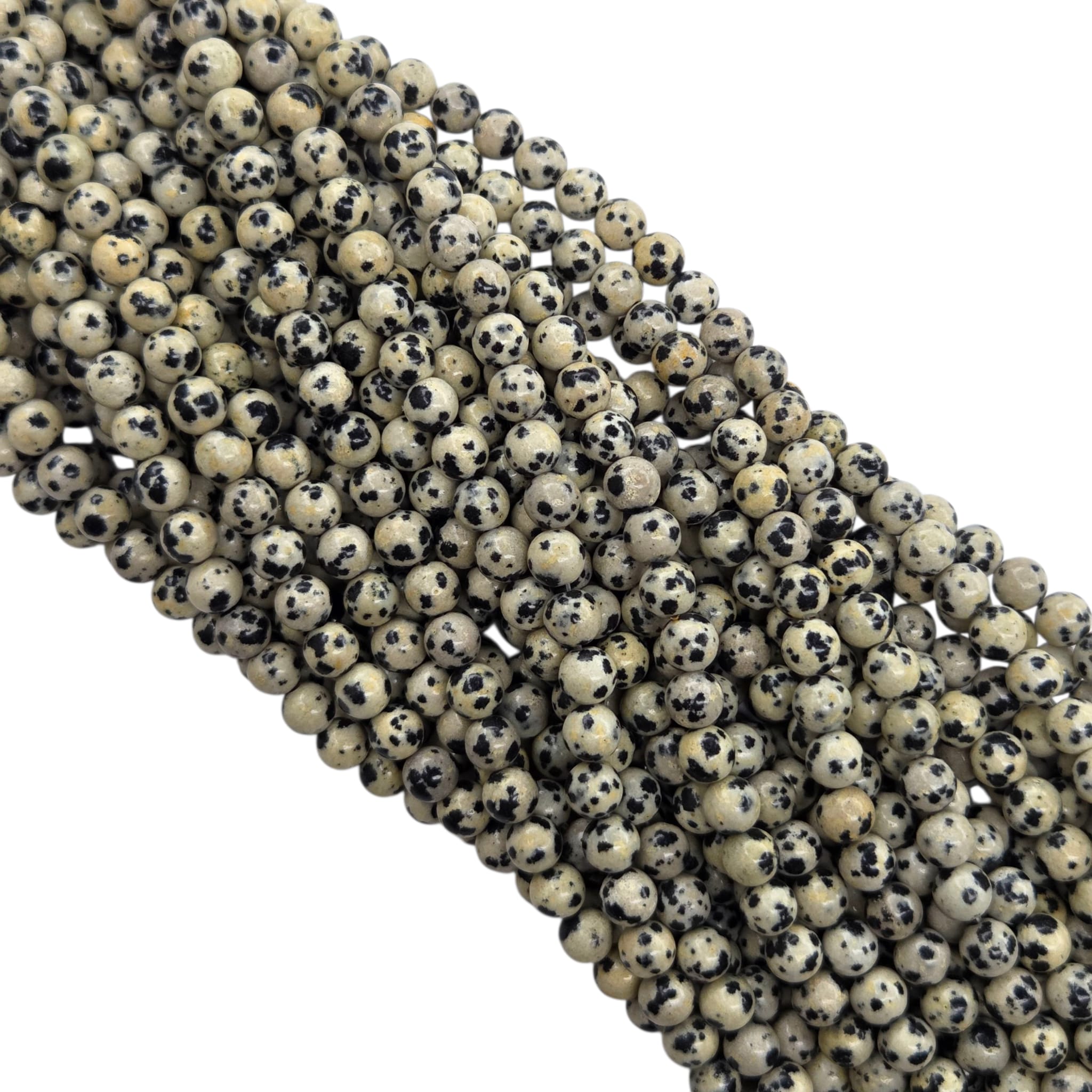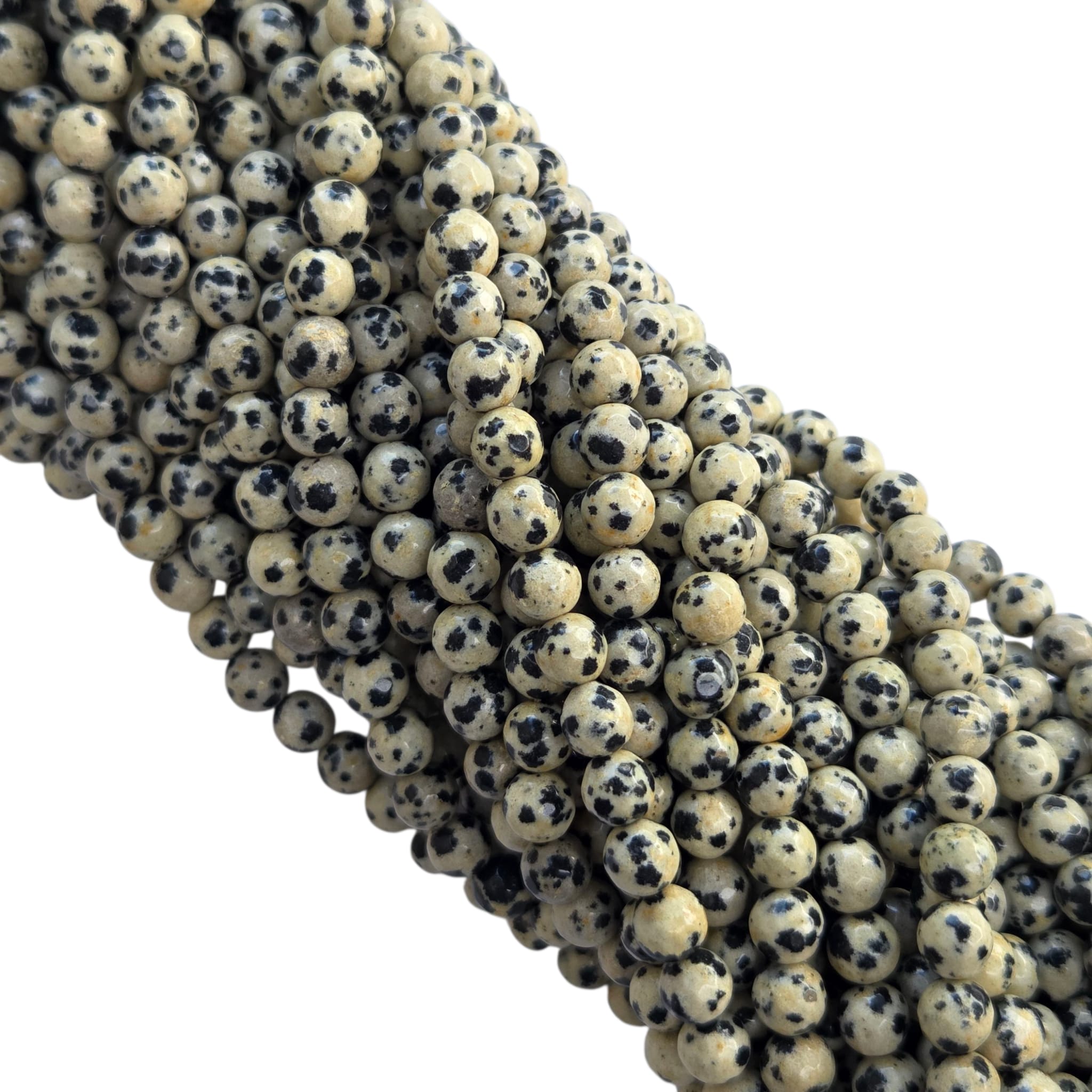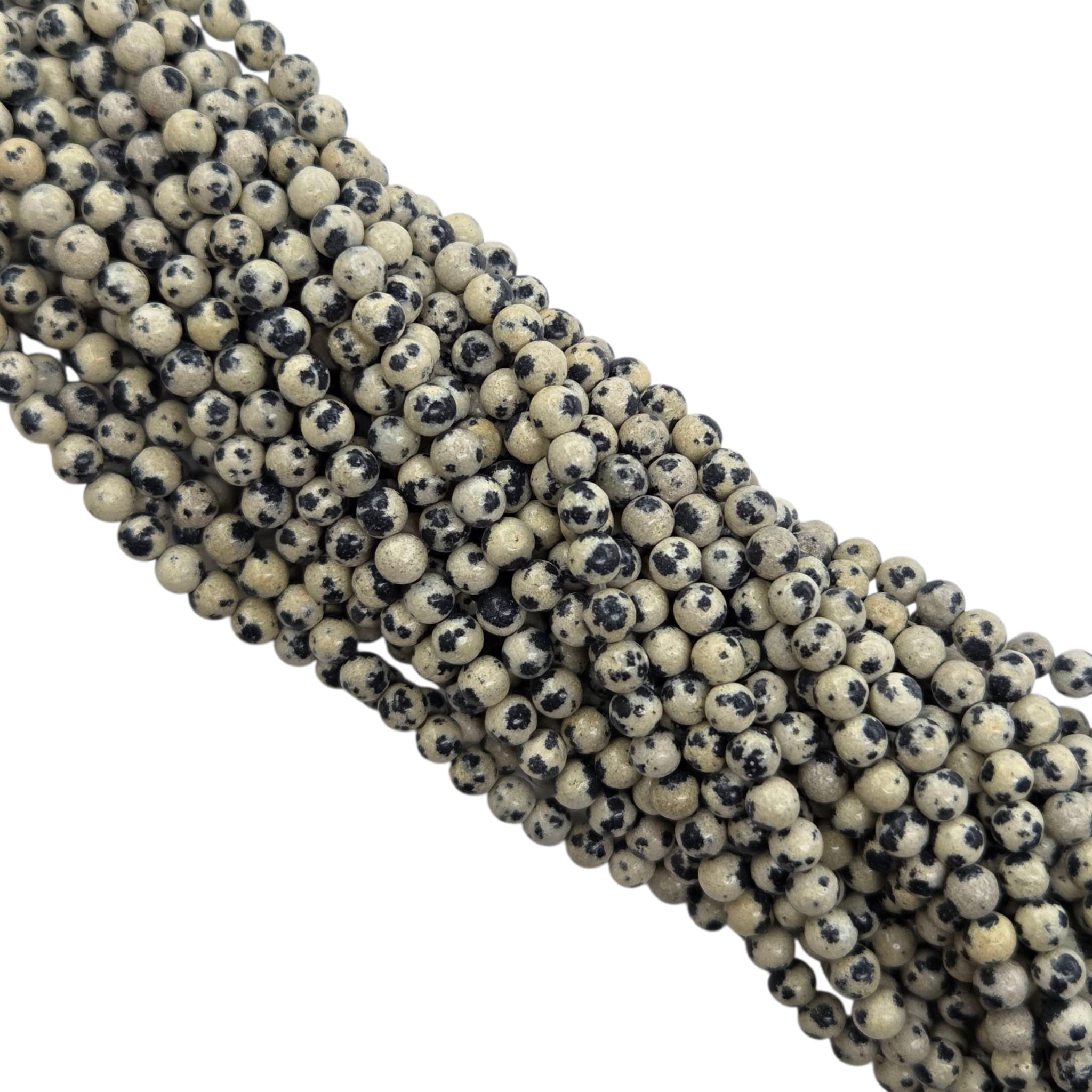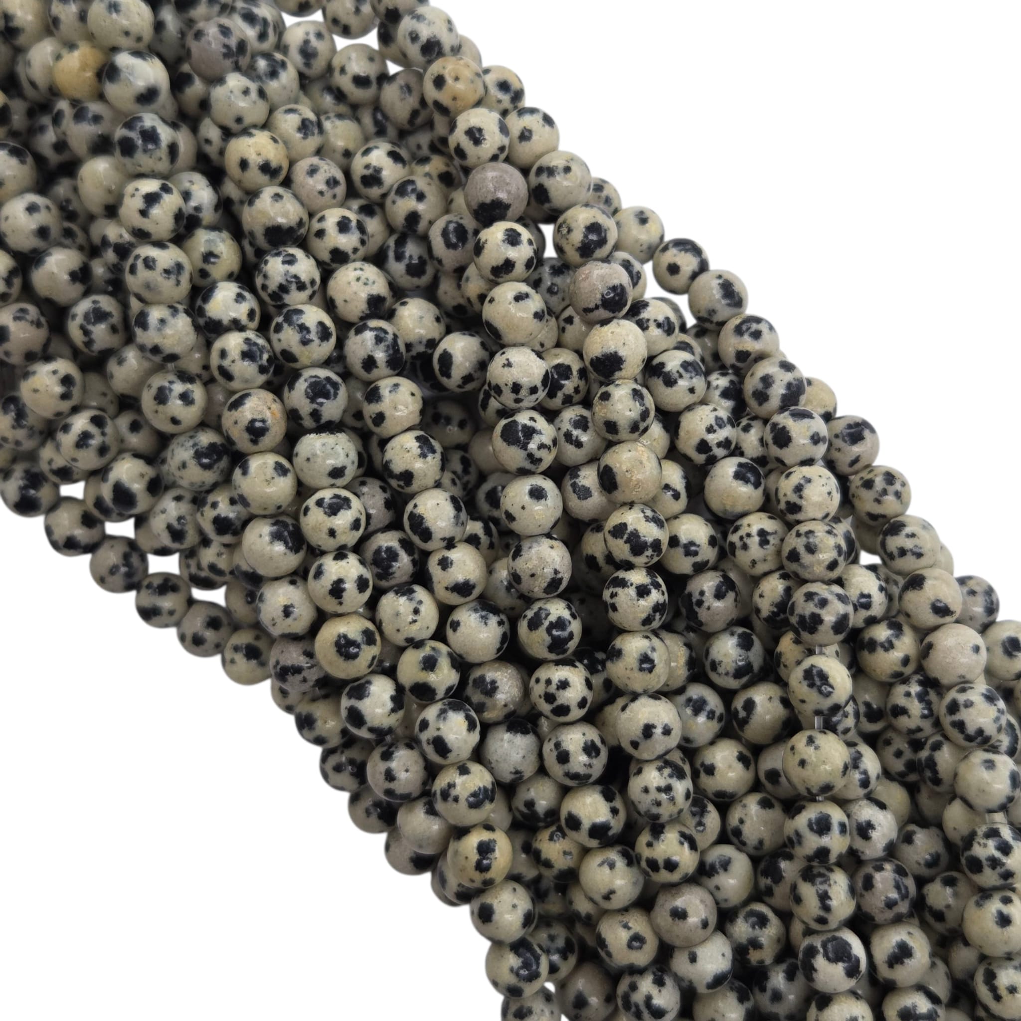Jaspis dalmatyński wyróżnia się jasną, kremową barwą z czarnymi plamkami przypominającymi umaszczenie dalmatyńczyka. To kamień o unikalnym wyglądzie, który dodaje biżuterii oryginalności nadając jej wyjątkowego, wręcz zabawnego a nawet lekko nonszalanckiego charakteru. Doskonale sprawdza się w nowoczesnych, nietuzinkowych projektach.