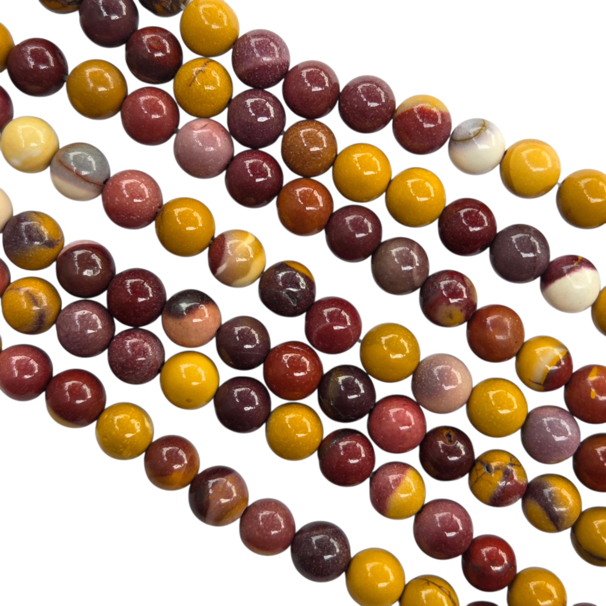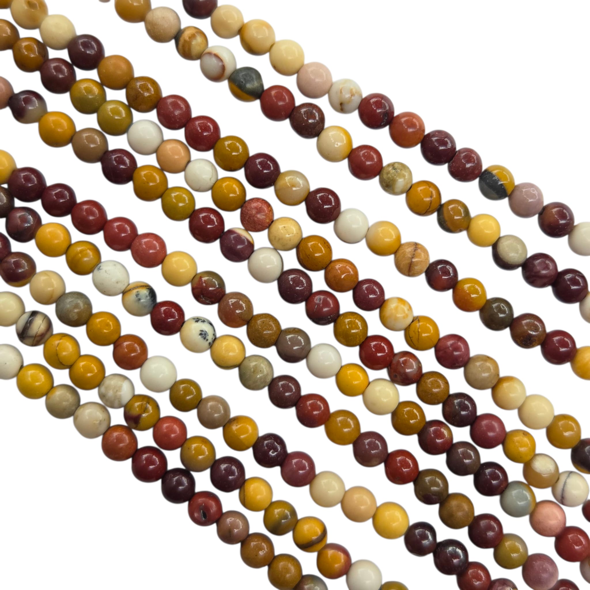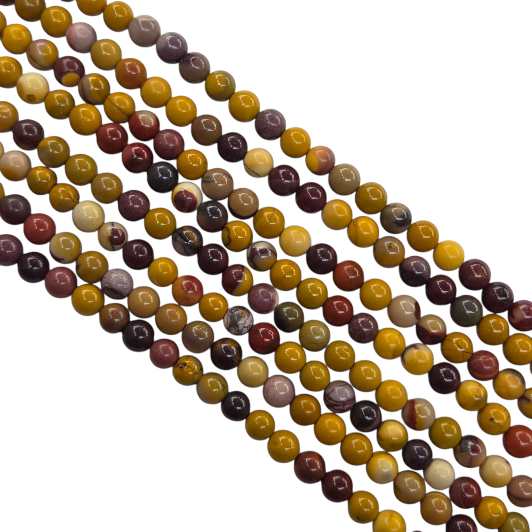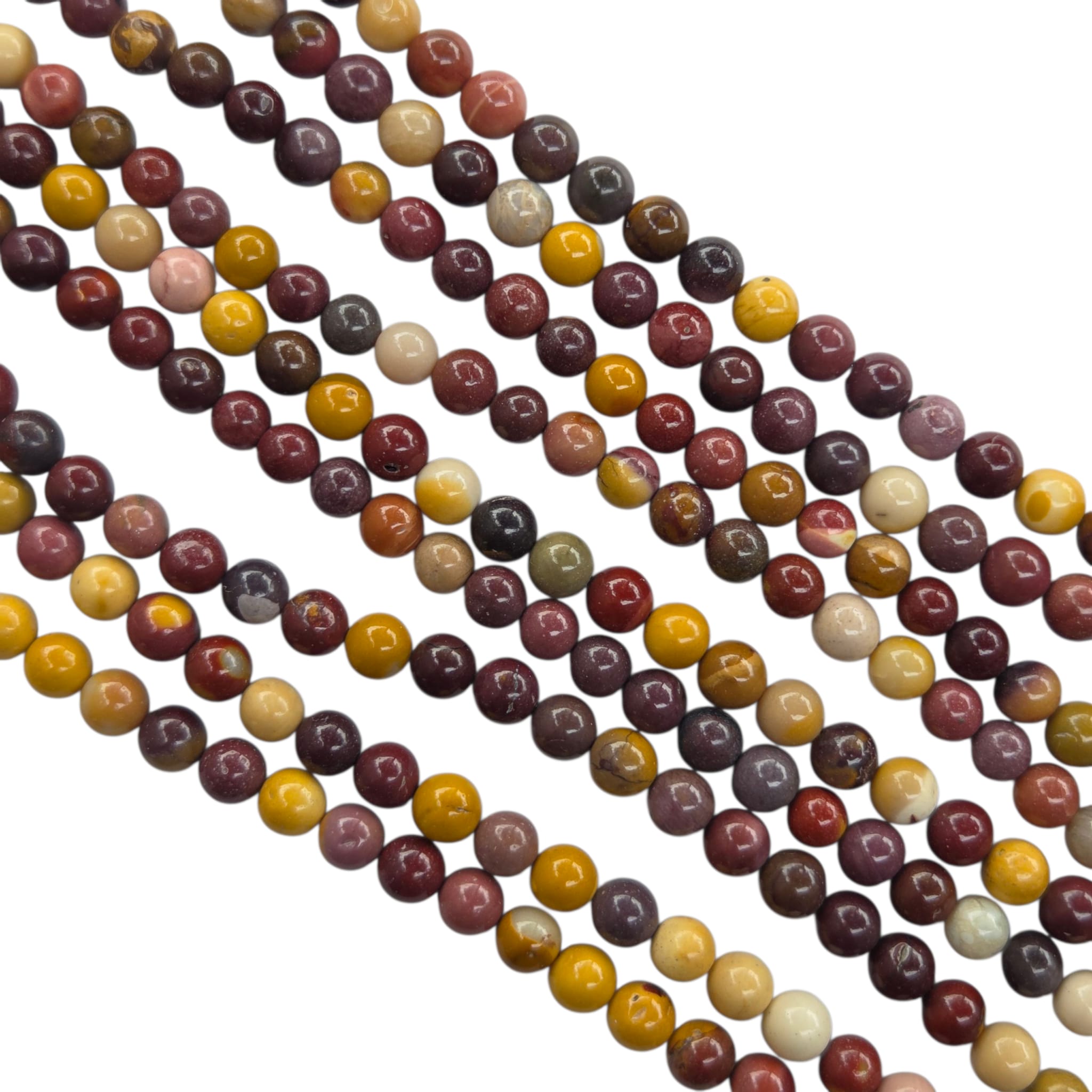 Mokait to australijska odmiana jaspisu, w którym przeplatają się odcienie żółci, czerwieni, brązu i fioletu, tworząc naturalne, malarskie wzory. Biżuteria z mokaitu wyróżnia się ciepłym, ziemistym charakterem i unikatowym pięknem, dzięki czemu każdy projekt z tym kamieniem staje się wyjątkowy. Dzięki swojej różnorodności jest często wykorzystywany w biżuterii etnicznej i nowoczesnej.