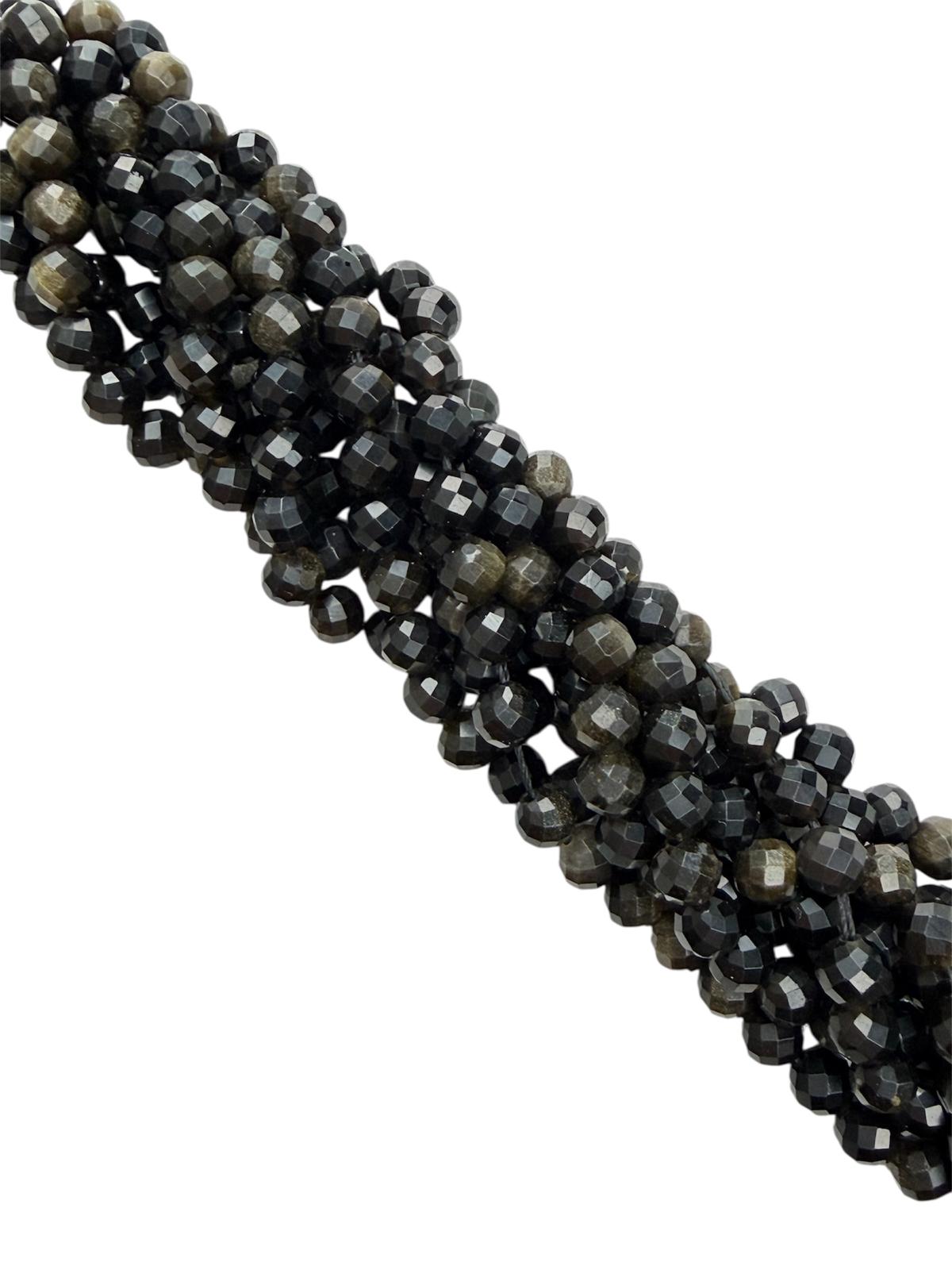 Obsydian złocisty to kamień o głębokiej czerni o subtelnym złotym połysku, który ujawnia się w świetle niczym tajemnicza poświata. Biżuteria z tym minerałem łączy elegancję z niepowtarzalnym urokiem, idealnie podkreślając odważne i wyraziste stylizacje. Często wybierany do biżuterii dla osób ceniących elegancję i tajemniczy charakter naturalnych minerałów.
